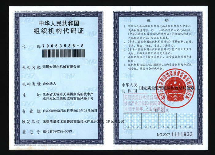 ◇ Business License ◇ Self inspection registration certificate ◇ Organization Code