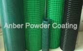 Brief description: The metal fence is first preheated to a certain temperature and then passed through a fluidized bed of plastic powder where the powder particles melt, adhere and flow out to form a smooth continuous PVC coating. It is then post-heated to complete the curing of the outer surfaces. Both pre-heating furnace and curing furnace are natural gas heated.