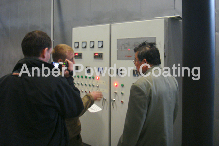 Anber engineer is teaching the Russian worker how to operate control cabinate